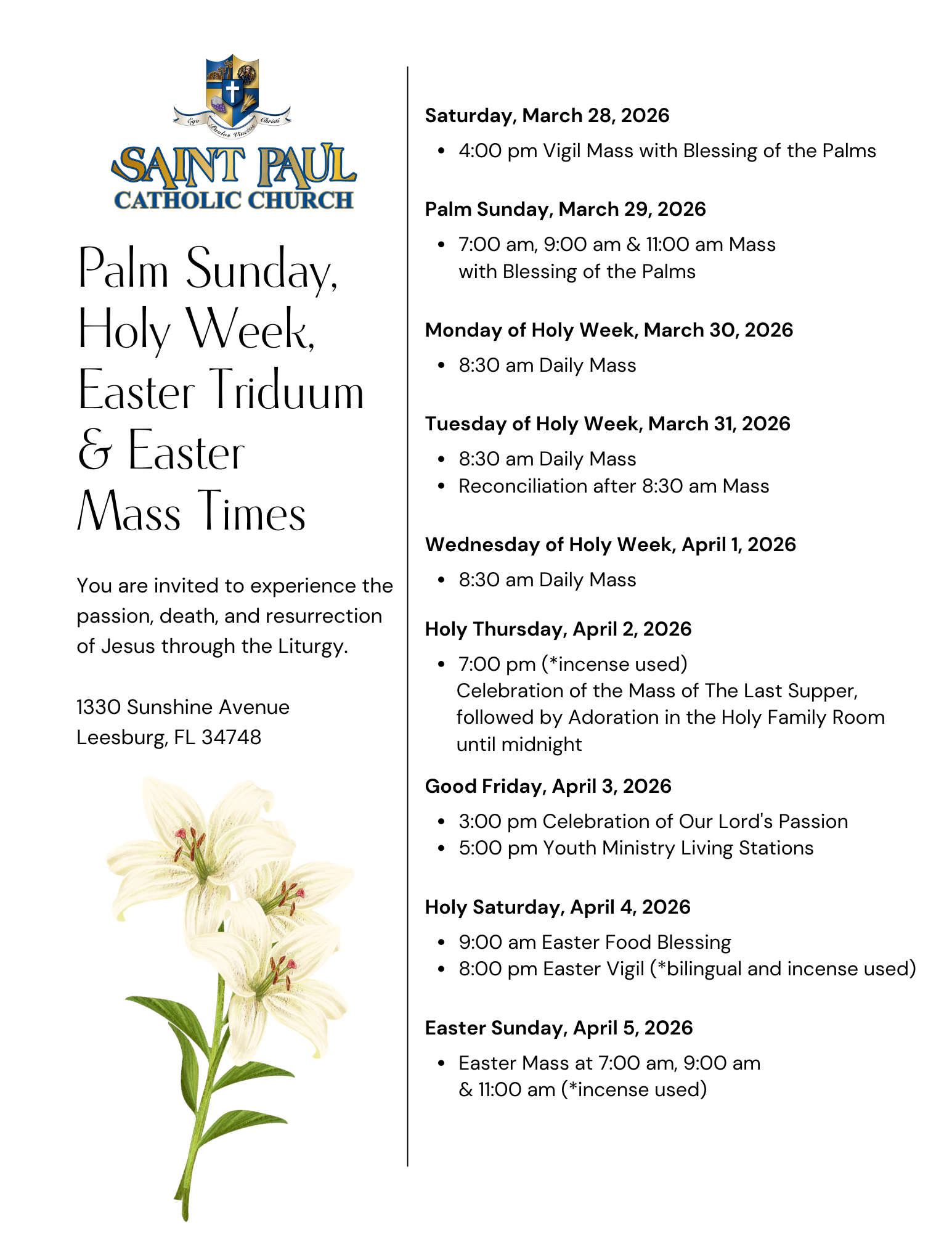 & Easter Mass Times
